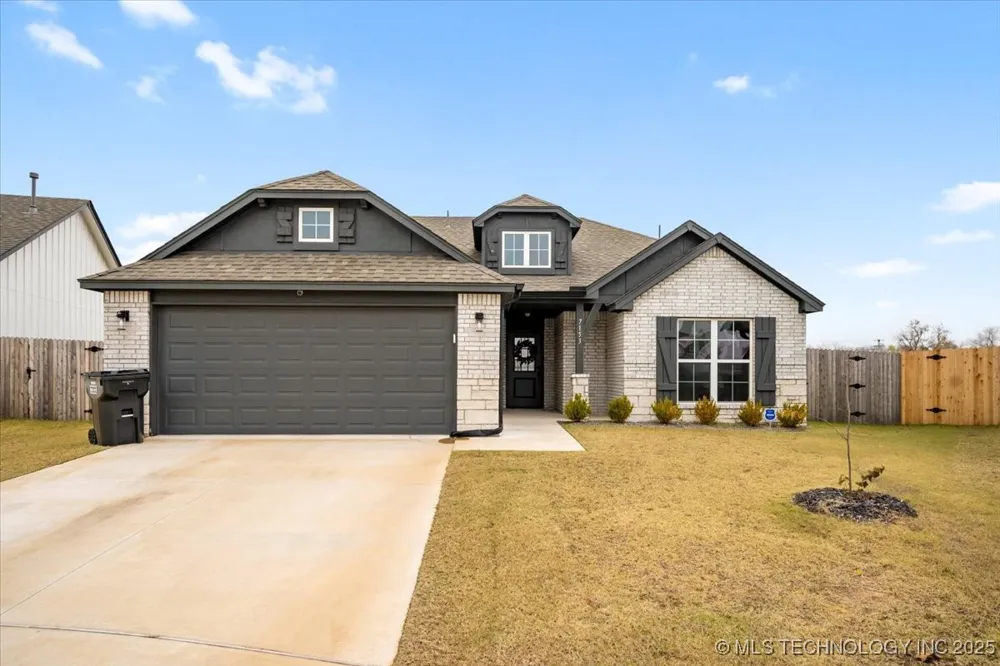 Modern, well designed home on the best lot in River Crest, This 4 bed 2 bath single-level barely lived in home, completed in 2023 has a modern open layout filled with natural light and elevated by soaring cathedral ceilings, a wood beam accent, and expansive windows. The kitchen is a true highlight, featuring a gas cooktop, walk-in pantry, spacious island, and stainless steel appliances. The thoughtful floor plan offers comfort, flexibility, and easy, low-maintenance living throughout. located in a Cul De Sac with a huge back yard backing to a pond lot. Tons of room for the kids to play. Located just off 131st and Sheridan in Bixby, this home is steps from the neighborhood pool and close to the bike trail, courts in common, and the growing mix of shops and restaurants nearby.